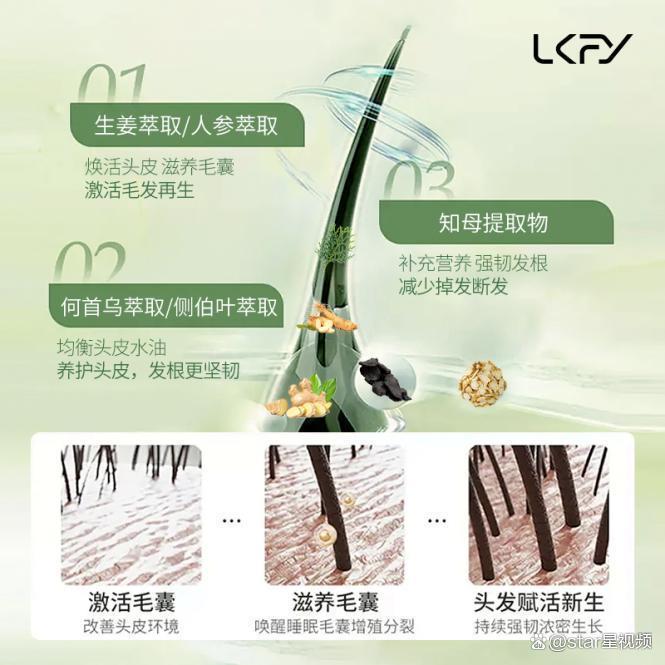 露卡菲娅防脱育发液“国妆特字防脱”,使用放心,重度脱发建议人手三瓶(最划算)。性质蛮温和的,咱敏敏头皮用了也不觉得刺激。小绿瓶内含何首乌、人参、知母根、当归和侧柏叶等植萃,可以用于平衡头皮水油、修护受损毛囊、供能滋养、让头发越发强韧粗壮,有效防脱发。独家专研的生发因子作用于毛囊,缩短休止期,刺激头发再生长。